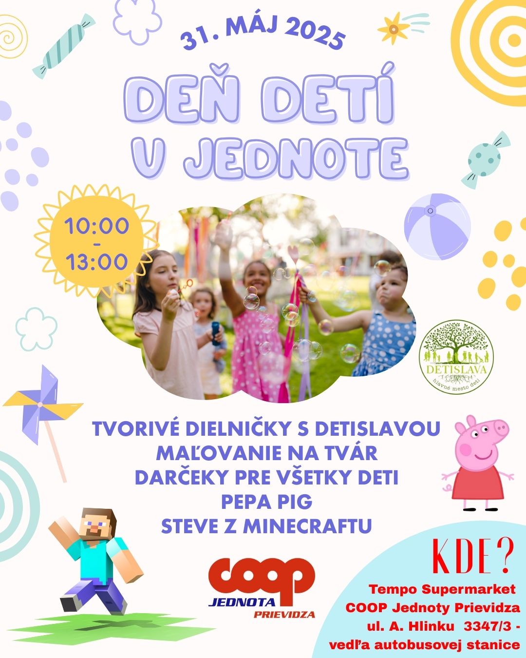 Príďte 31. 5. o 10:00 do nového Tempo Supermarketu COOP Jednoty Prievidza pri autobusovej stanici v Prievidzi a užite si s nami príjemný čas plný zábavy!