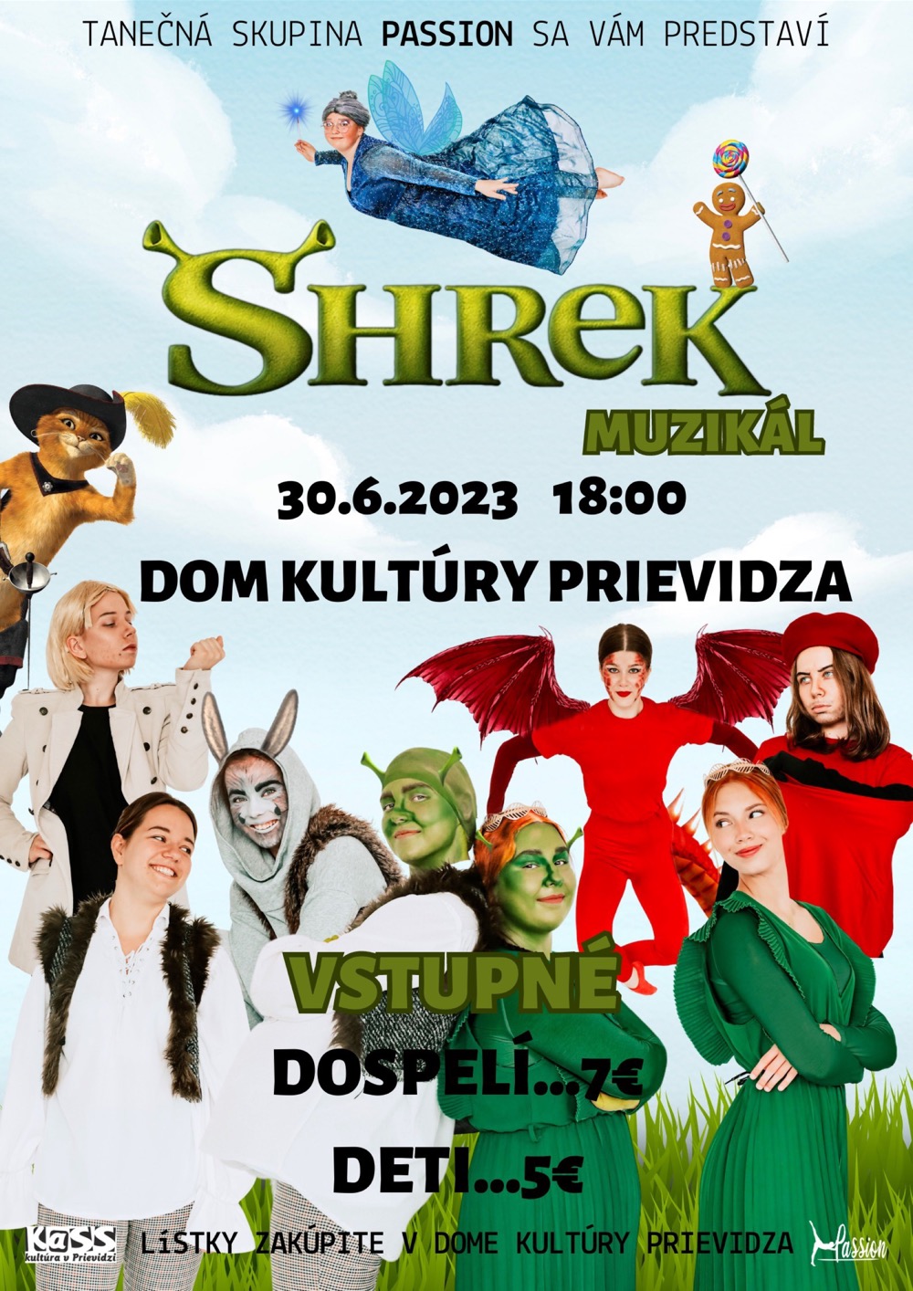 Srdečne vás pozývame na muzikál SHREK v podaní tanečnej skupiny PASSION, ktorý sa uskutoční v piatok, 30. júna 2023 v Dome kultúry Prievidza. Koncert je vhodný aj pre menších divákov, či rodiny.