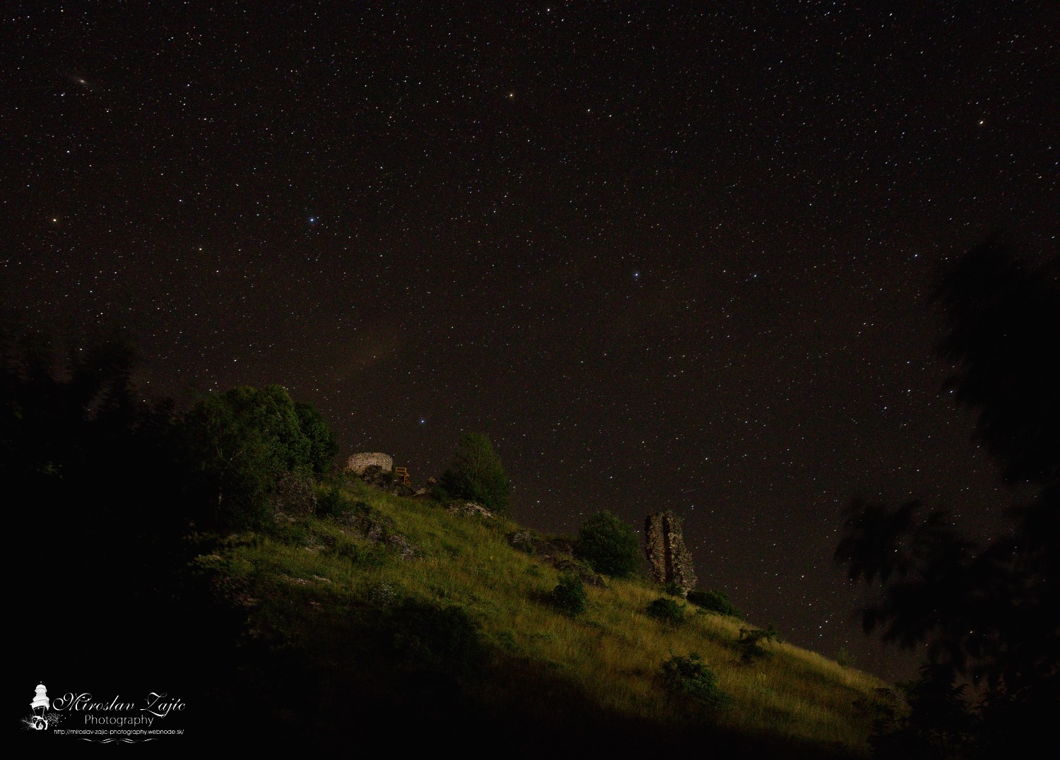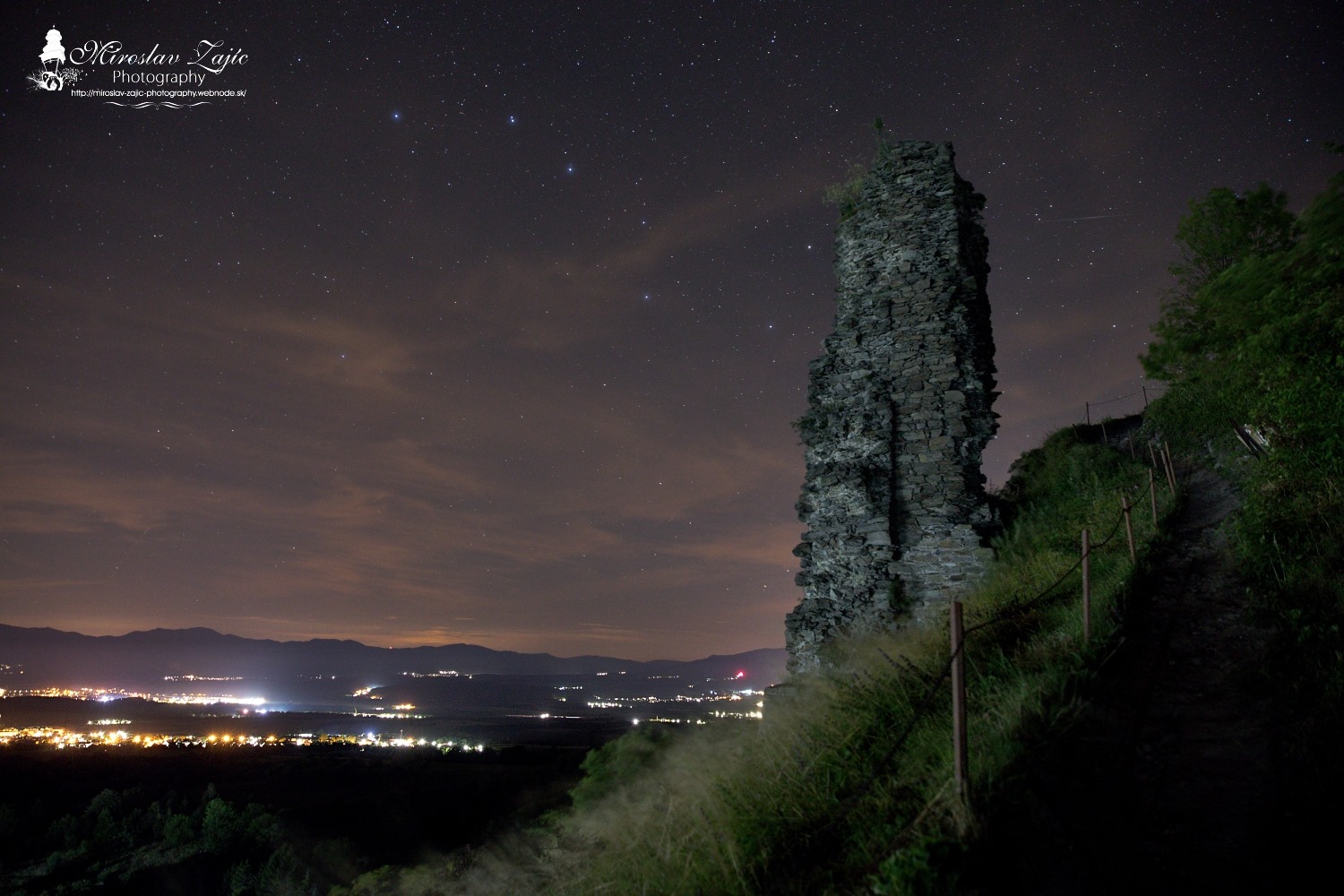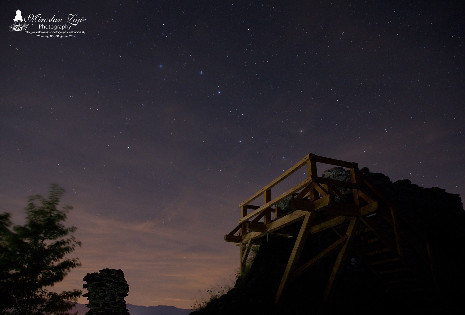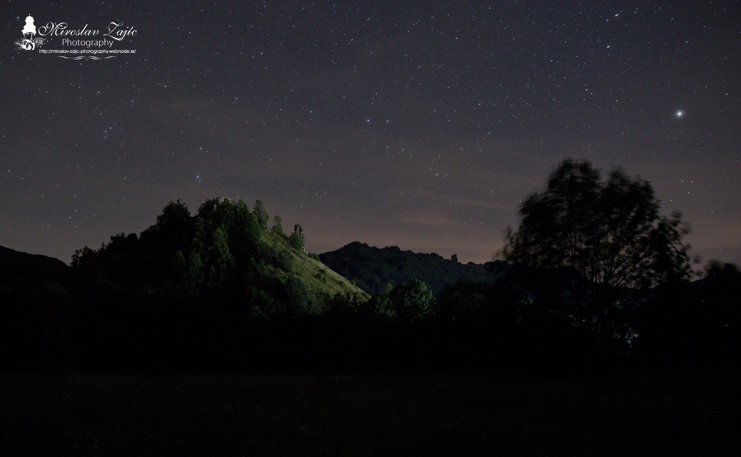 Foto: Hrad Sivý kameň Podhradie - západ slnka a nočná obloha