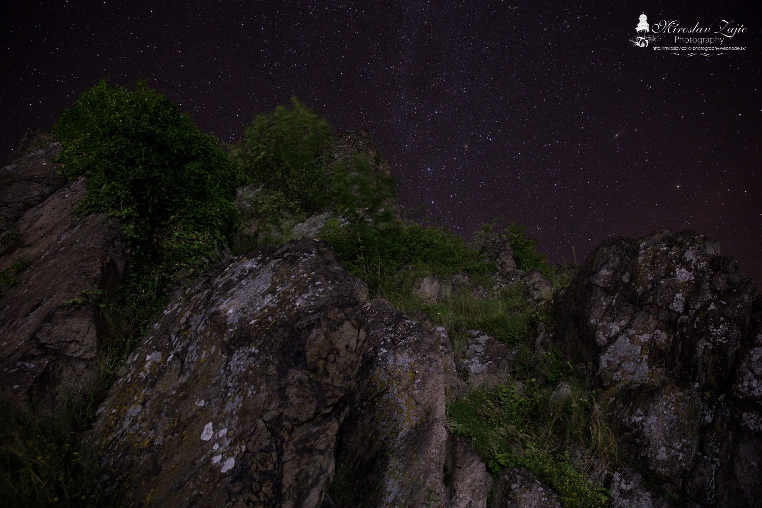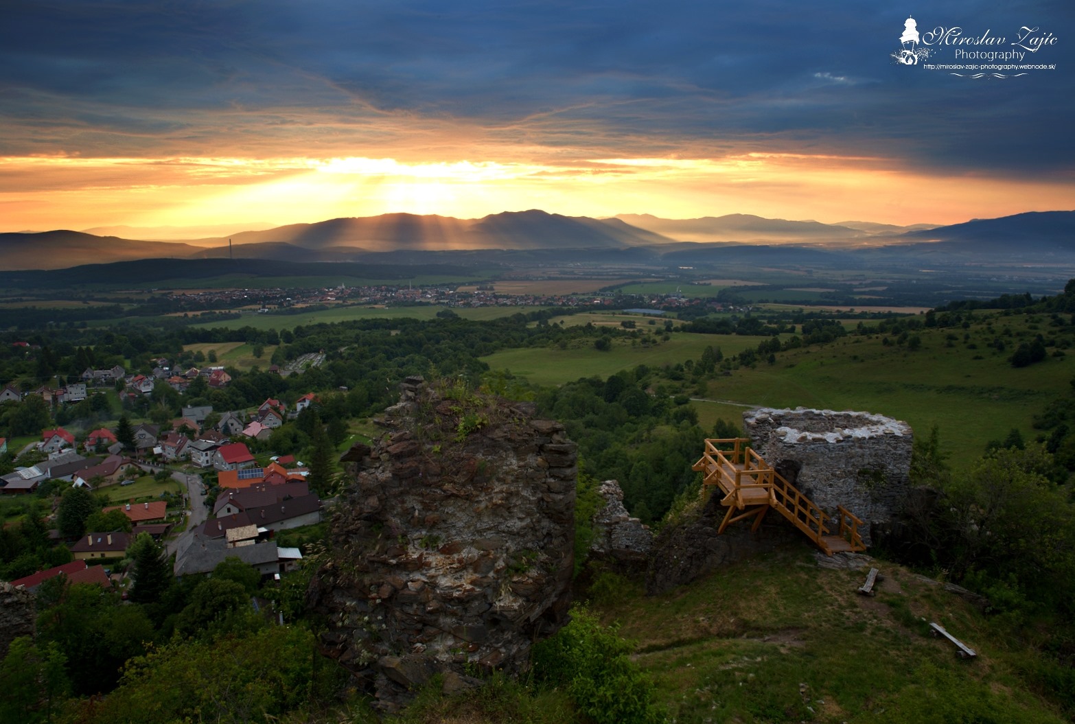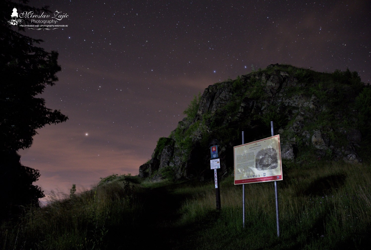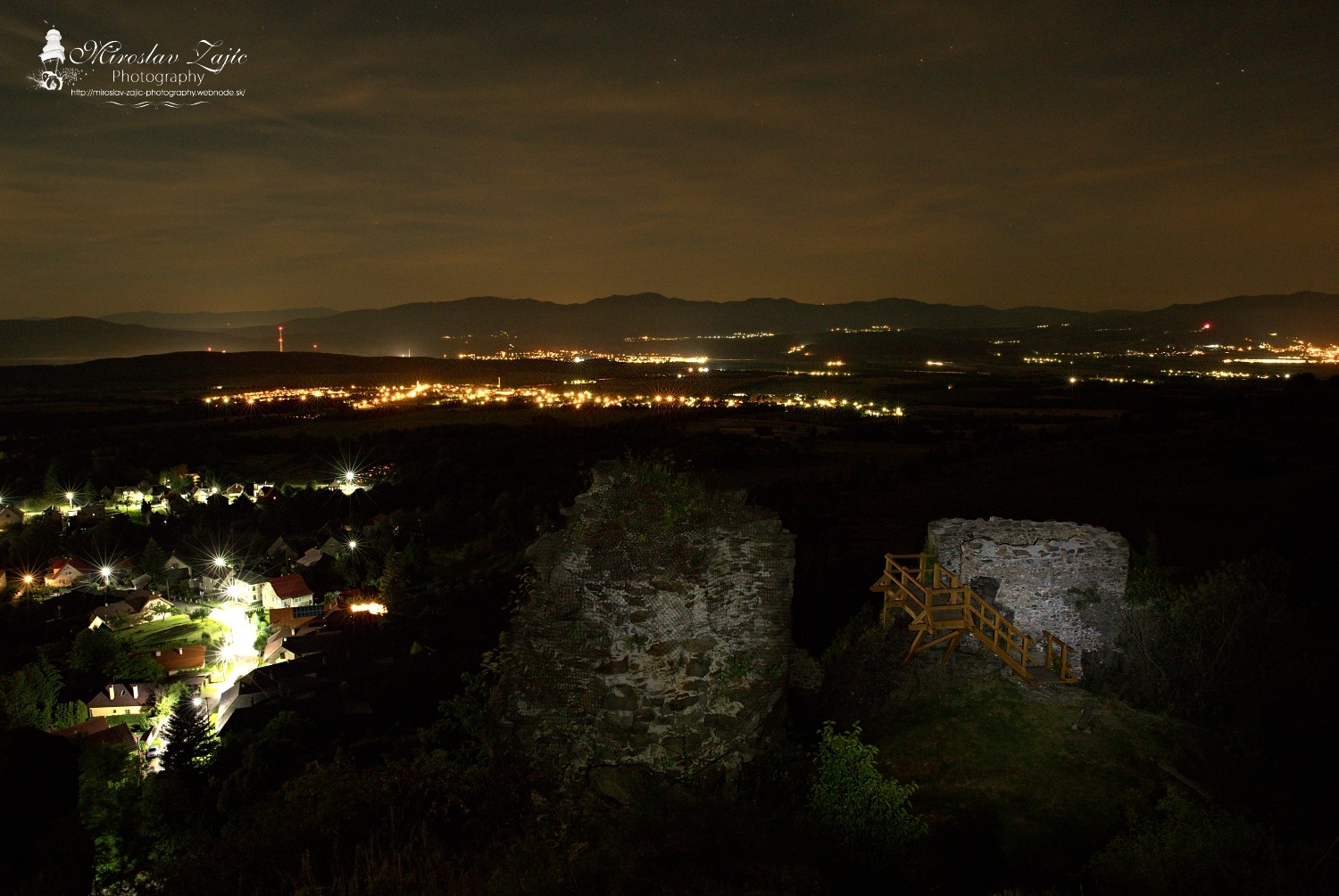 Foto: Hrad Sivý kameň Podhradie - západ slnka a nočná obloha