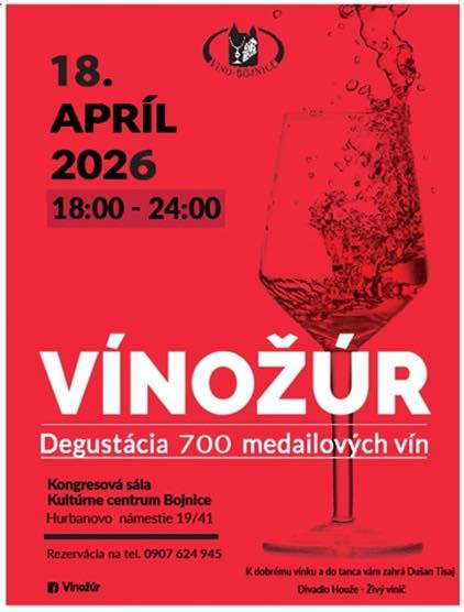 Drahí priatelia, milovníci kvalitného vína! Srdečne vás pozývame na 26. ročník jedinečnej vínnej akcie - VÍNOŽÚR 2026, ktorá je vyvrcholením odbornej časti medzinárodnej súťaže VÍNO BOJNICE.