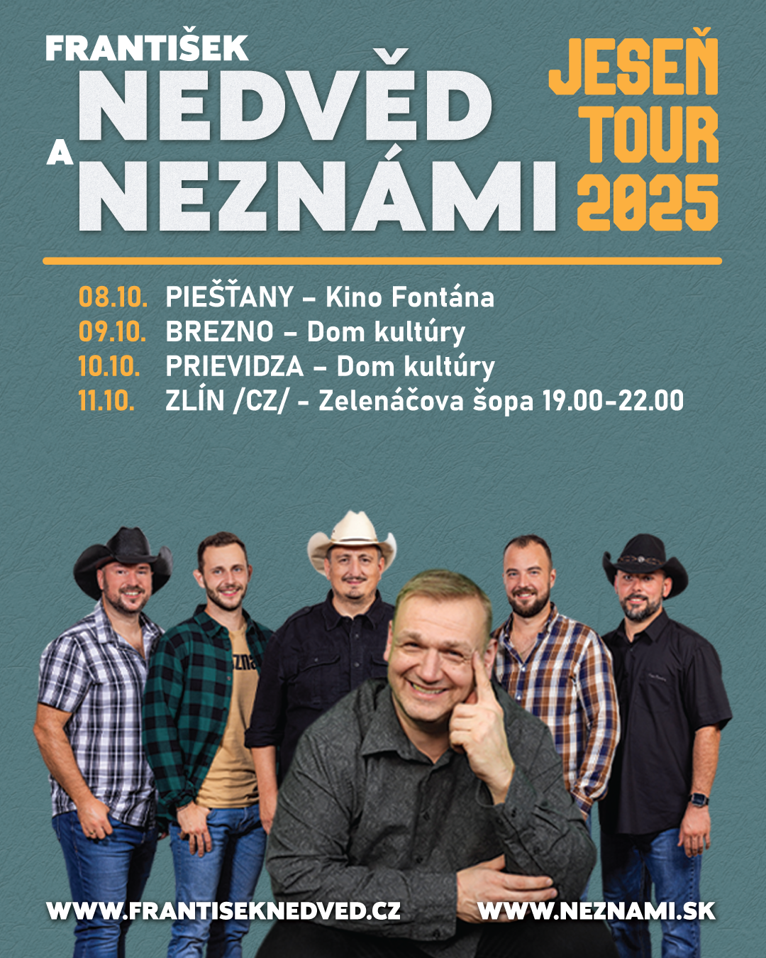 Prinášame vám jedinečný projekt, spojenie prvorodeného syna legendárnej českej folkovej a country legendy Františka NEDVĚDA, ktorý pokračuje v rodinnej tradícii, s jednou najúspešnejších slovenských country skupín NEZNÁMI.