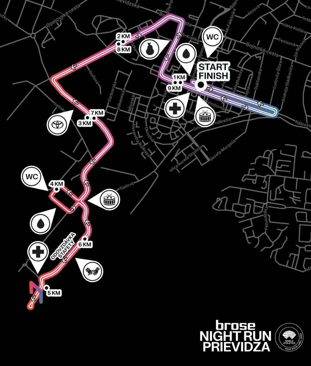 Najrýchlejšia desiatka na Slovensku. Má certifikovanú trať s prevýšením 8 metrov na 10 kilometrov. Brose Night Run Prievidza 2025