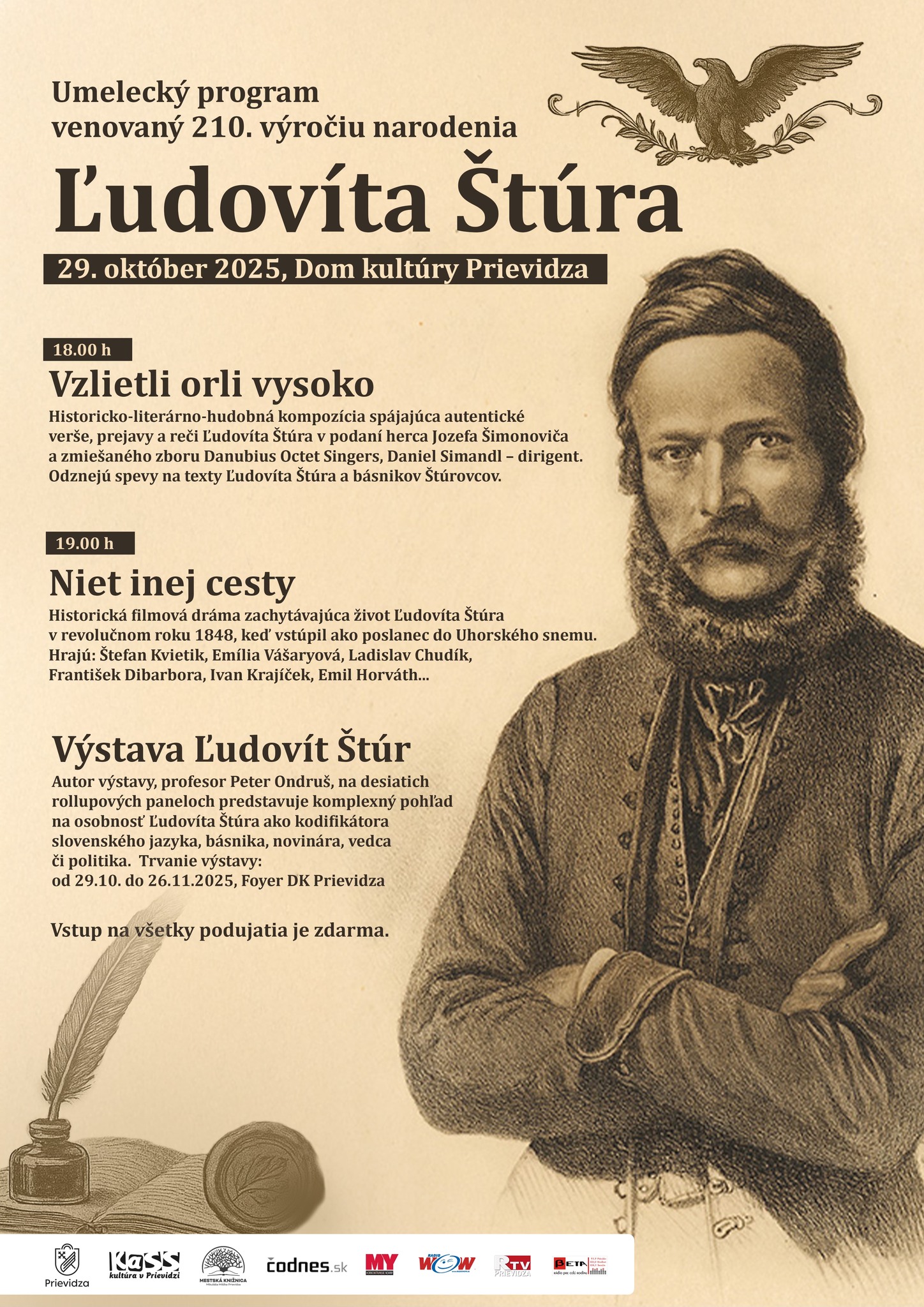 Historicko-literárno-hudobná kompozícia spájajúca autentické verše, prejavy a reči Ľudovíta Štúra v podaní herca Jozefa Šimonoviča a zmiešaného zboru Danubius Octet Singers, Daniel Simandl – dirigent. Odznejú spevy na texty Ľudovíta Štúra a básnikov Štúrovcov.