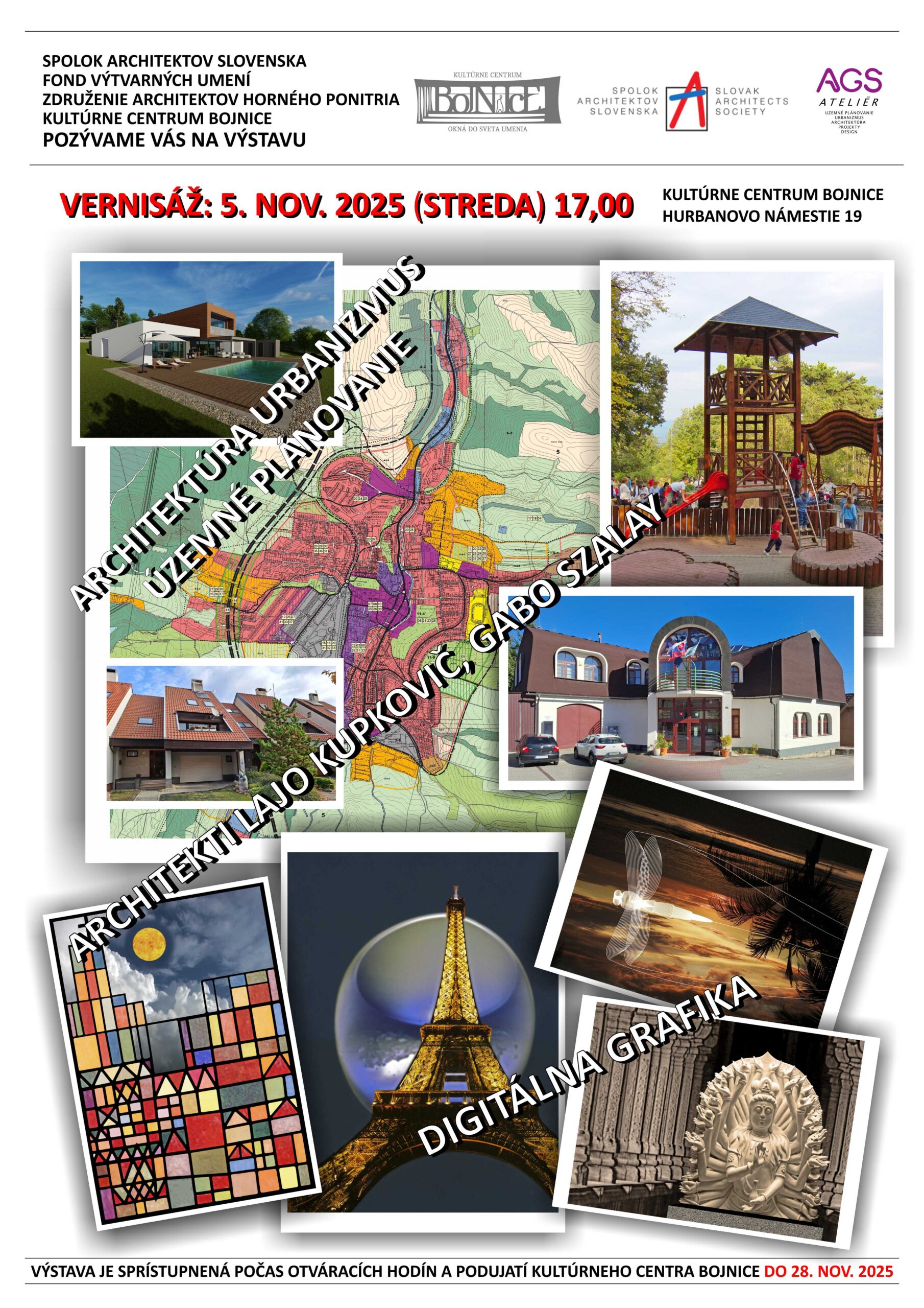 Spolok architektov Slovenska, Fond výtvarných umení, Združenie architektov horného Ponitria a Kultúrne centrum Bojnice vás pozývajú na výstavu