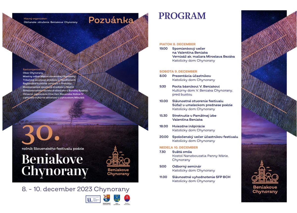 10.00 slávnostné otvorenie Slovenského festivalu poézie Beniakove Chynorany, súťaž v prednese poézie / Katolícky dom Chynorany