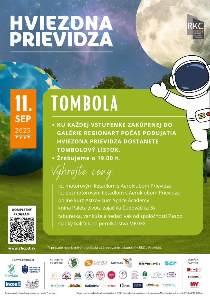 Žrebovanie tomboly prebehne po prednáške Ivana Bellu, cca o 19.00 h v parku Skotňa alebo v sále RKC (podľa počasia). Výsledky tomboly zverejníme 11. 9. o 20.00 h na webe: https://lnk.sk/atls1