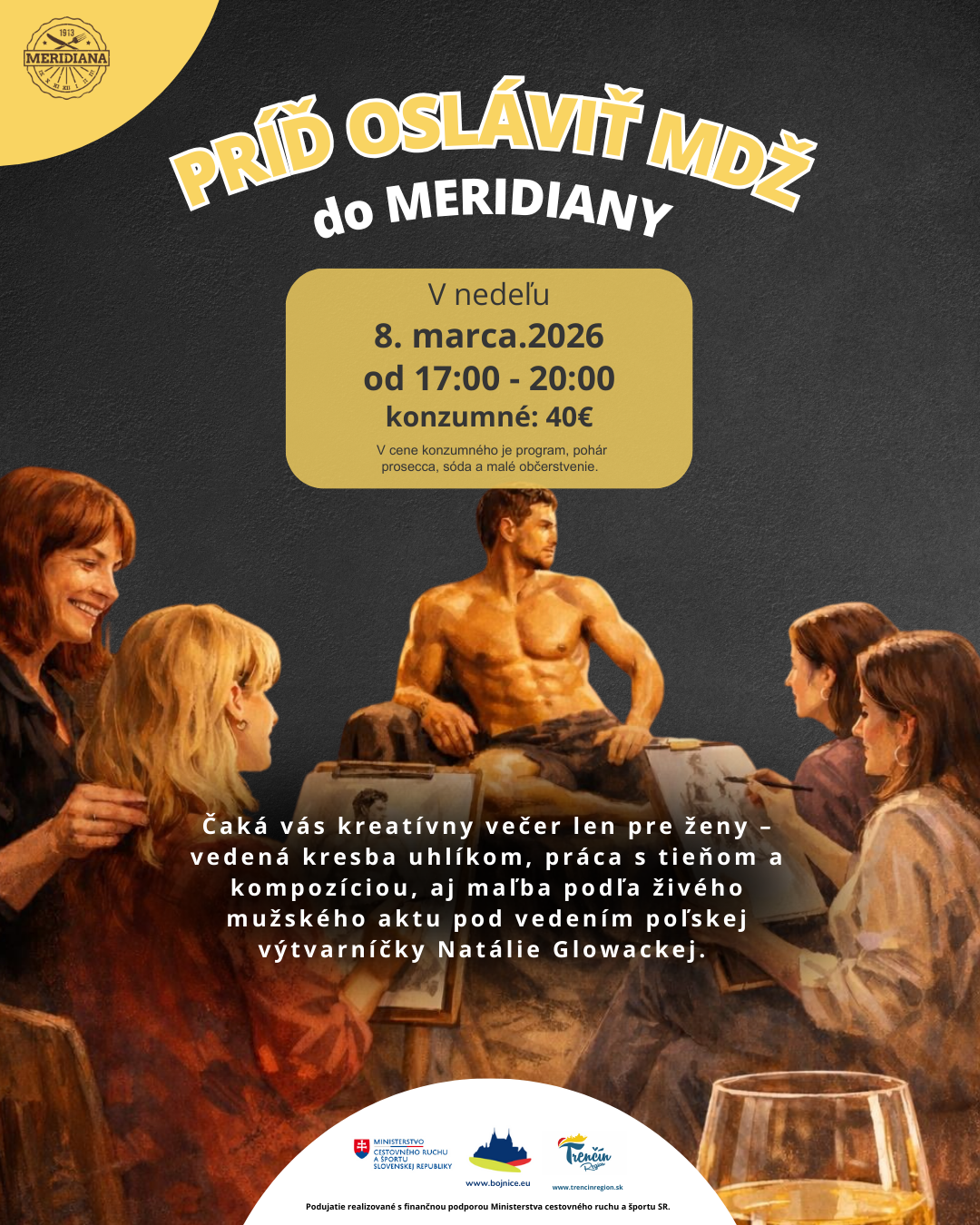💶 Konzumné: 40€ (v cene konzumného je program, pohár prosecca, sóda a malé občerstvenie)