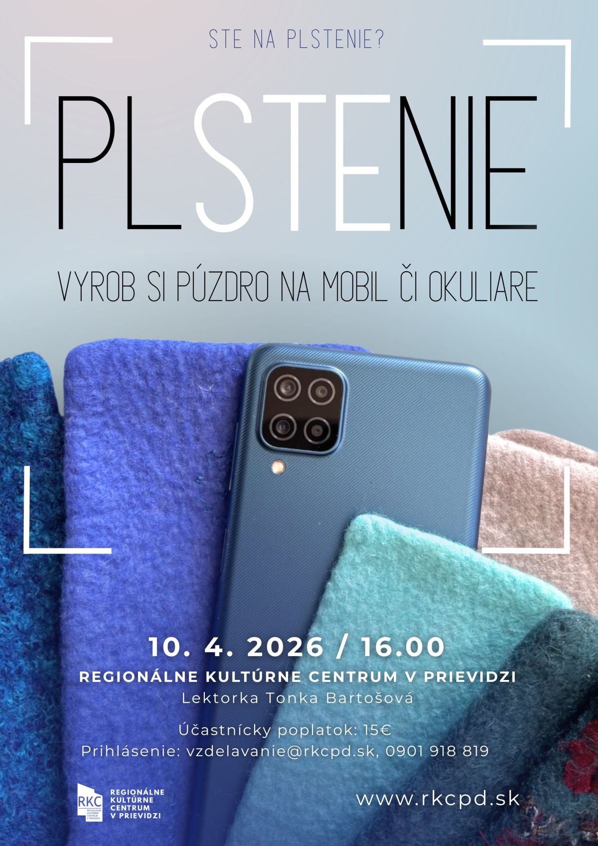 Na kurze si pod vedením lektorky Tonky Bartošovej vyskúšate techniku mokrého plstenia a vyrobíte si originálne puzdro na mobil alebo okuliare.