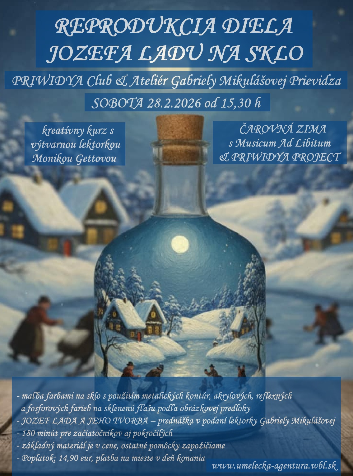 SOBOTA 7.2.2026 od 15,30 h – ČAROVNÁ ZIMA 2026 – zážitkovo – umelecké podujatie s Musicum Ad Libitum & PRIWIDYA PROJECT v PRIWIDYA Clube & Ateliéri Gabriely Mikulášovej v Prievidzi, ul. Košovská cesta 24