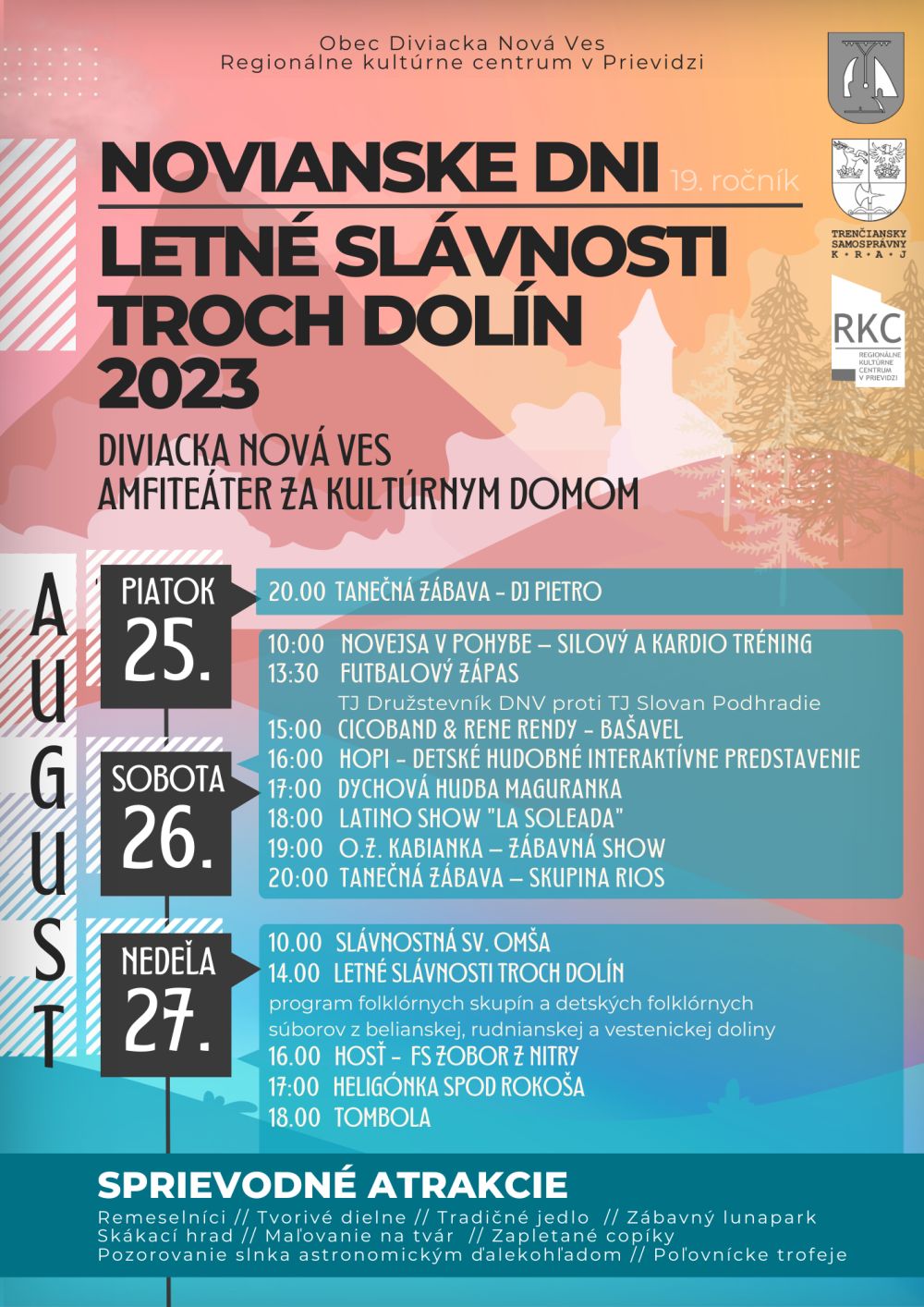 Remeselníci / tvorivé dielne / tradičné jedlo / zábavný lunapark / skákací hrad / maľovanie na tvár / zapletané copíky / pozorovanie slnka astronomickým ďalekohľadom / poľovnícke trofeje