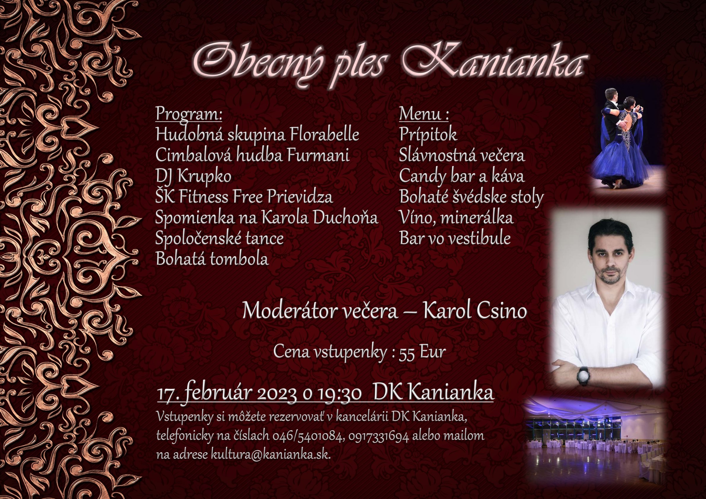 Obec Kanianka a Dom kultúry Kanianka Vás pozývajú na Obecný ples obce Kanianka