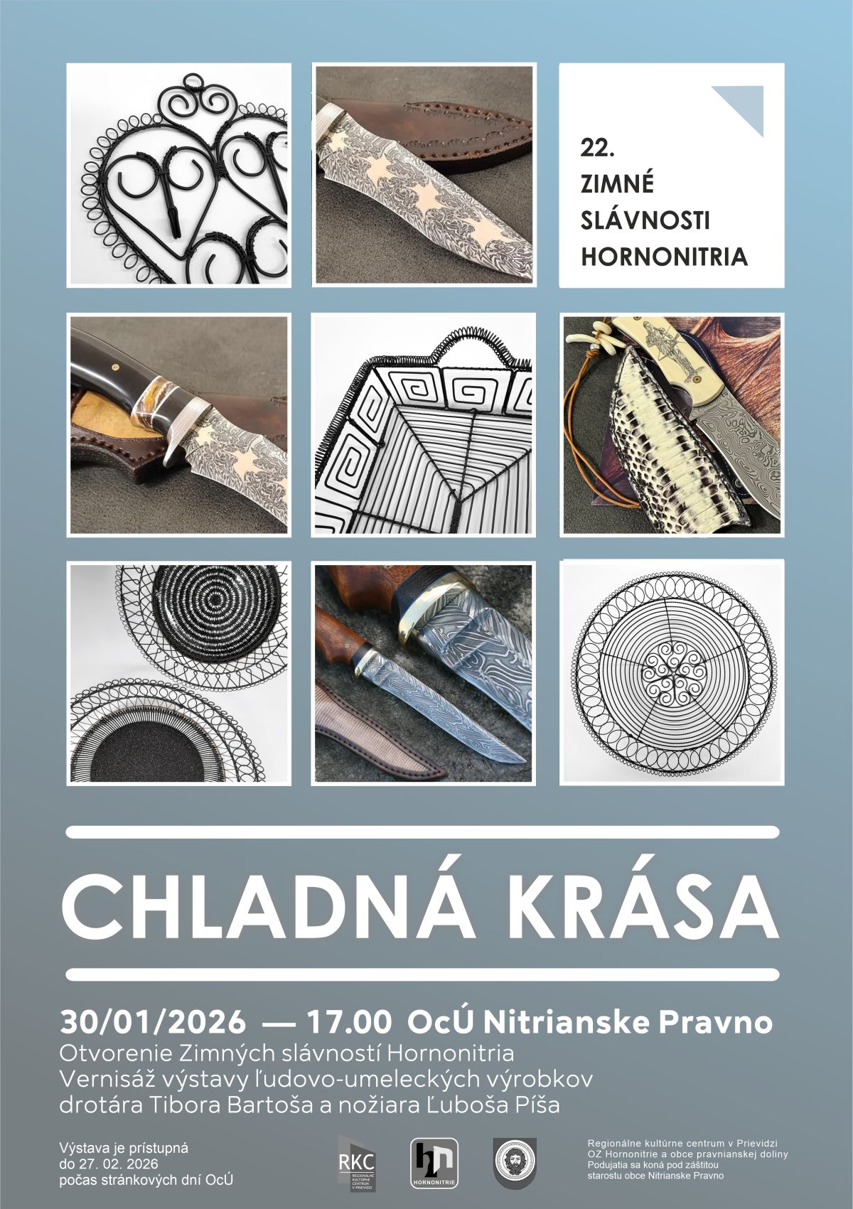 Prvý podujatím cyklu Zimné slávnosti Hornonitria bude vernisáž výstavy Chladná krása, ktorá sa bude konať v piatok 30. januára 2026 o 17:00 v priestoroch obecného úradu v Nitrianskom Pravne.
