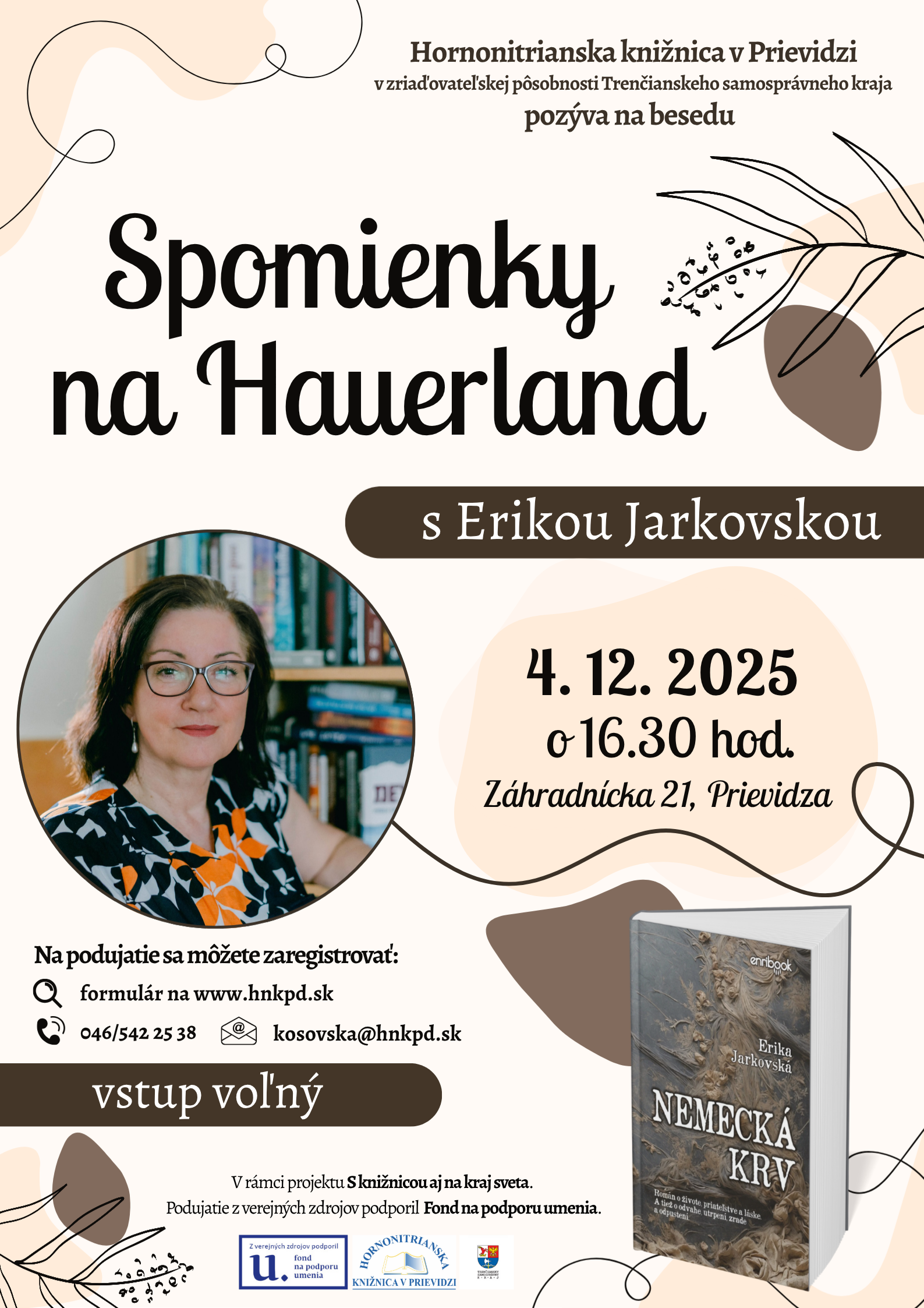 Viac informácií o podujatí sa dozviete na webovej stránke našej knižnice: https://www.hnkpd.sk/podujatia/spomienky-na-hauerland.html?page_id=14663