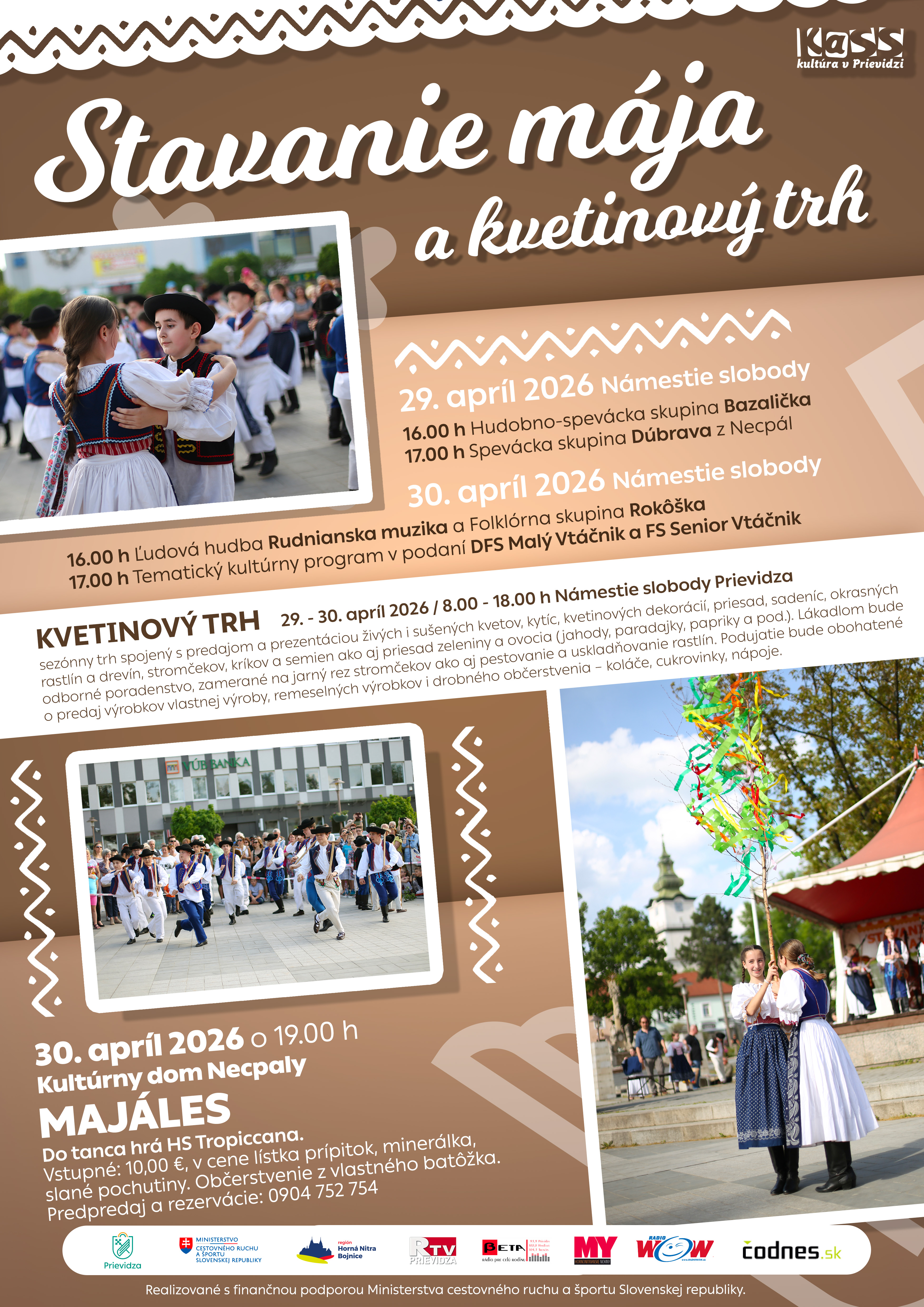 Pozývame vás na Stavanie mája, kvetinový trh aj veselý majáles – dni plné tradícií a dobrej nálady.