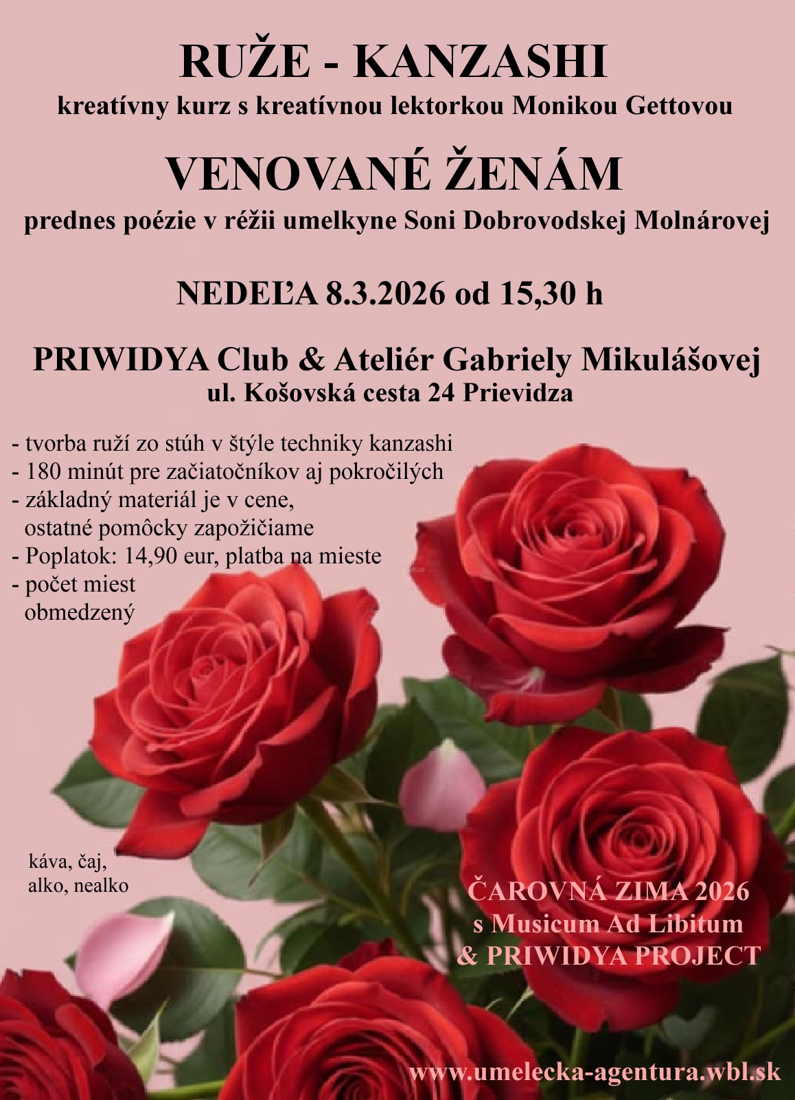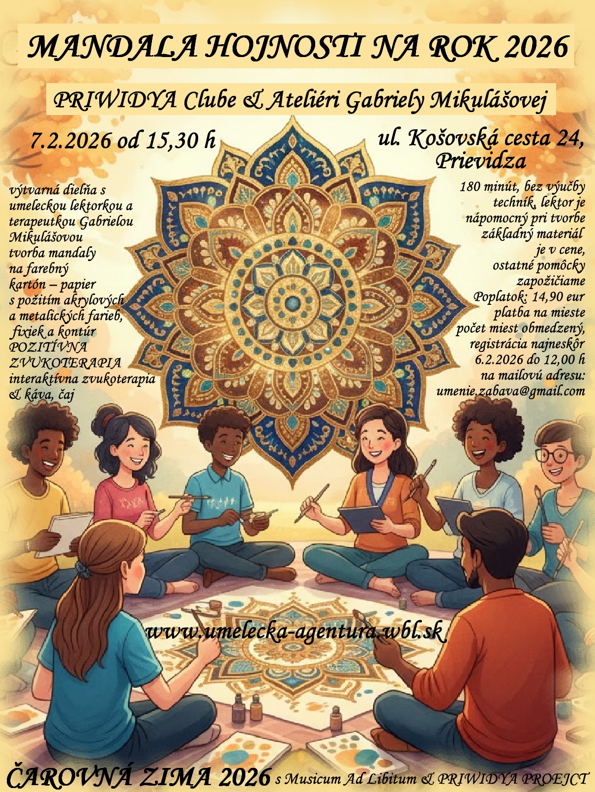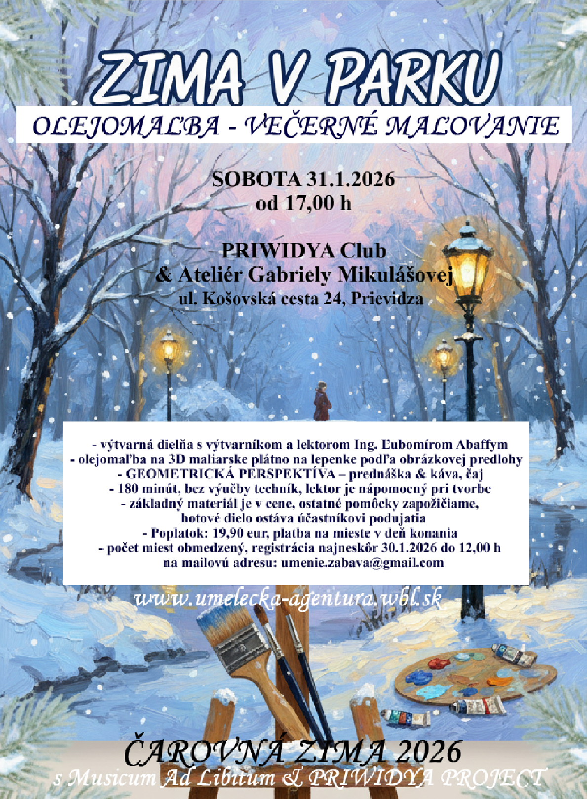 SOBOTA 14.2.2026 od 17,00 h – ČAROVNÁ ZIMA 2026 – zážitkovo – umelecké podujatie s Musicum Ad Libitum & PRIWIDYA PROJECT v PRIWIDYA Clube & Ateliéri Gabriely Mikulášovej v Prievidzi, ul. Košovská cesta 24