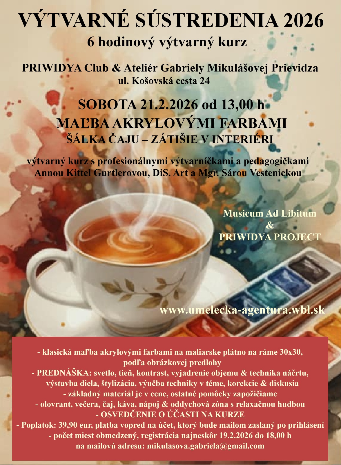 - počet miest obmedzený, registrácia najneskôr 13.2.2026 do 12,00 h na mailovú adresu:mikulasova.gabriela@gmail.com, registráciu potvrdzujeme spätným mailom