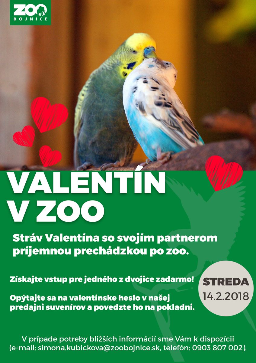na sviatok sv. Valentína si Národná zoo Bojnice pripravila akciu pre všetky zaľúbené páry. Stačí povedať heslo na pokladni, ktoré získajú v našej predajni suvenírov a jeden z dvojice ide do zoo zadarmo!