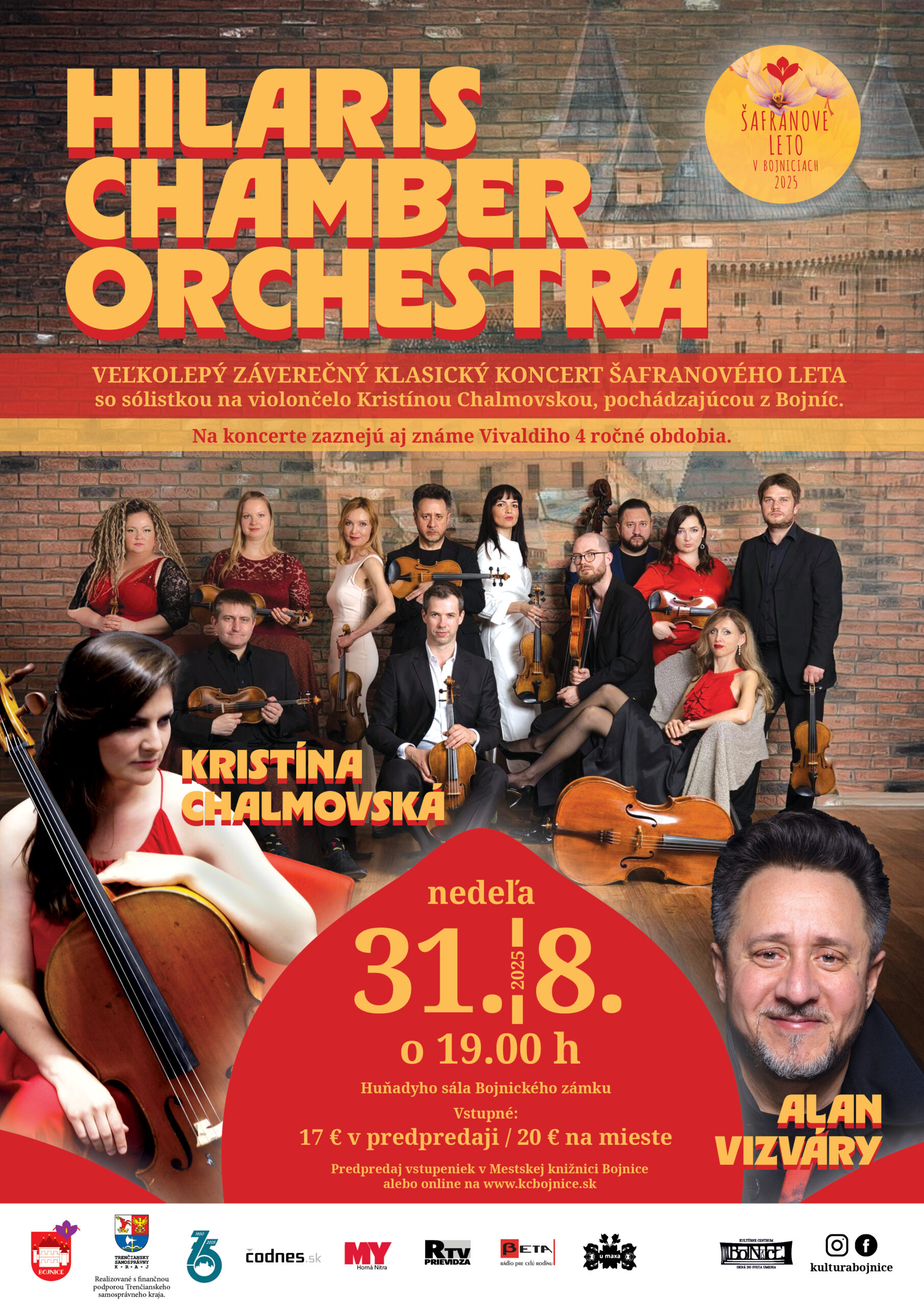 Pozývame vás do Huňadyho sály Bojnického zámku, na veľkolepý záverečný klasický koncert Šafranového leta – Hilaris Chamber Orchestra, so sólistkou na violončelo Kristínou Chalmovskou, pochádzajúcou z Bojníc.
