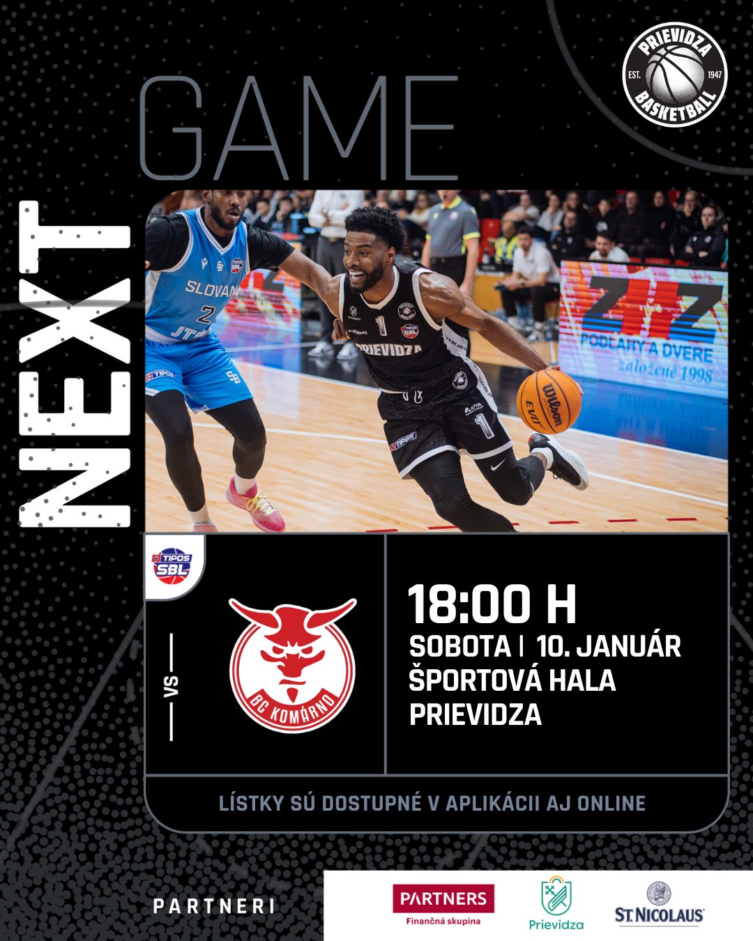 Vstupenky na sobotný duel sú dostupné online tu https://bcprievidza.enigoo.sk/app/tickets/events/19