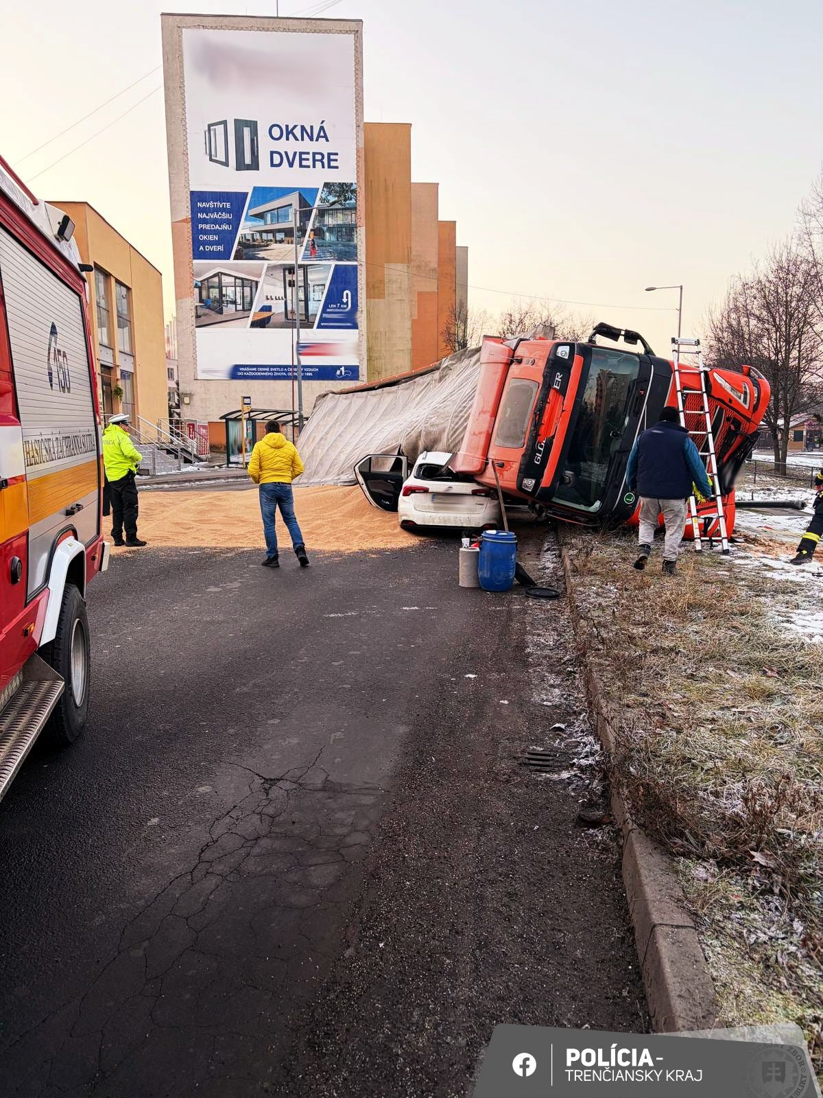 Dopravu na mieste v oboch smeroch v pondelok ráno zablokovala dopravná nehoda kamióna, ktorý sa prevrátil na osobné auto. „Pri nehode sa, našťastie, nikto nezranil. Okolnosti nehody budú predmetom vyšetrovania,“ doplnili policajti.