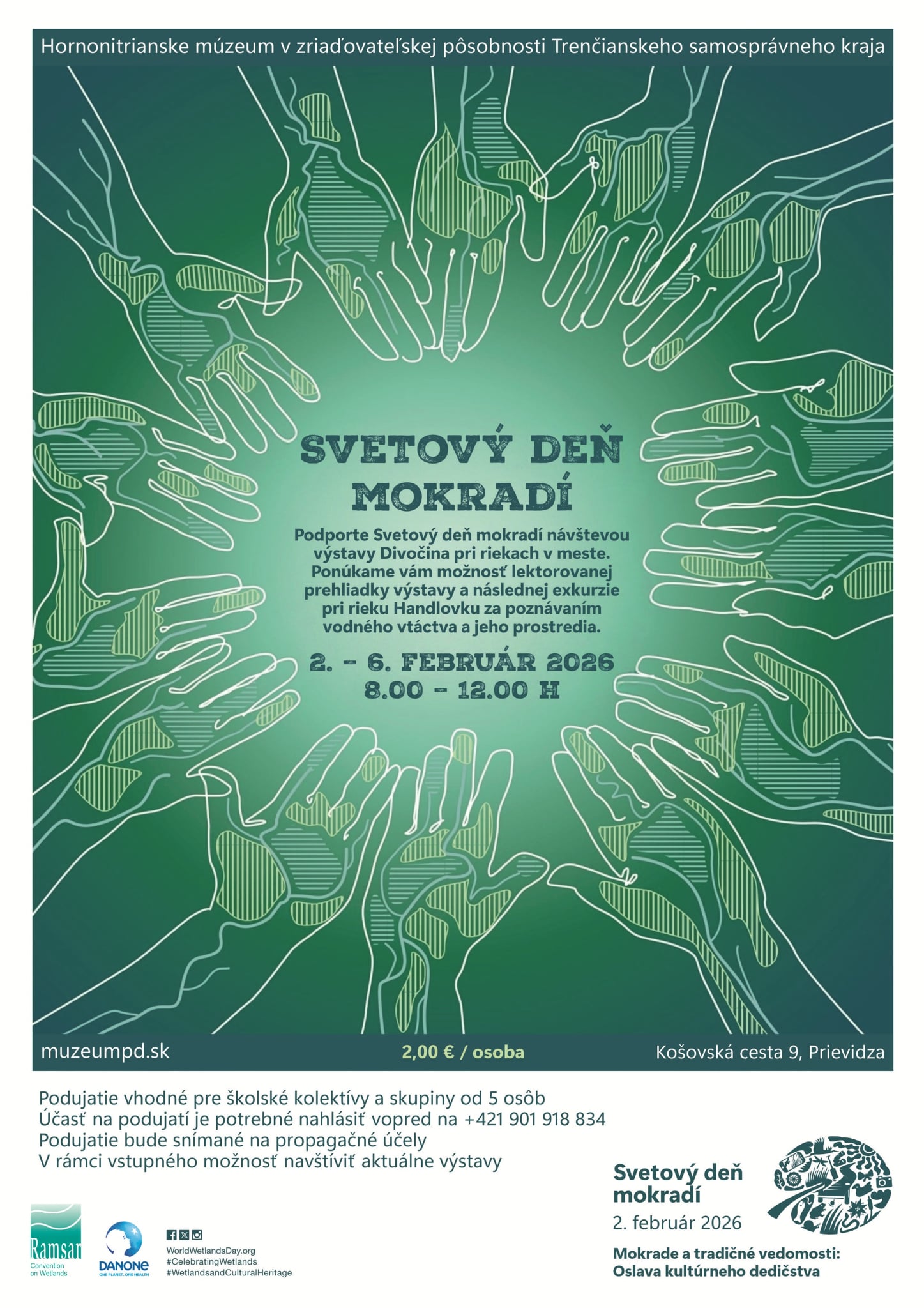 Podporte Svetový deň mokradí návštevou výstavy Divočina pri riekach v meste. Ponúkame vám možnosť lektorovanej prehliadky výstavy a následnej exkurzie pri rieku Handlovku za poznávaním vodného vtáctva a jeho prostredia.