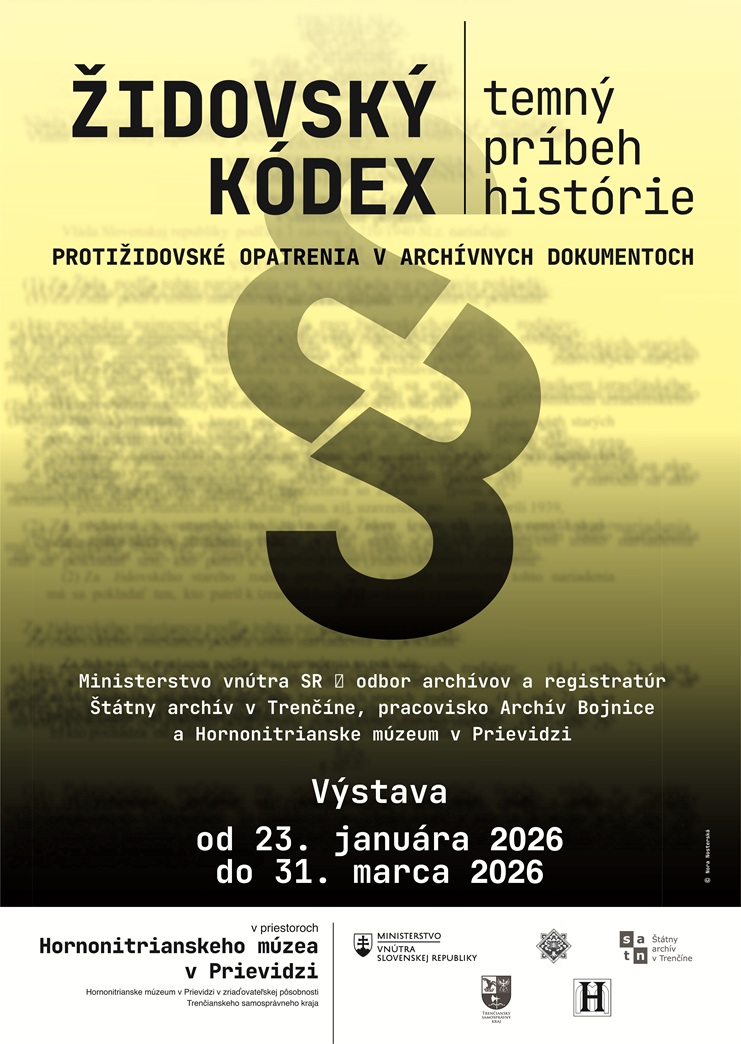 Hornonitrianske múzeum v Prievidzi v spolupráci s Ministerstvom vnútra SR - odbor archívov a registratúr, Štátny archív v Trenčíne, pracovisko Archív Bojnice vás pozývajú na výstavu zobrazujúcu protižidovské opatrenia v archívnych dokumentoch.