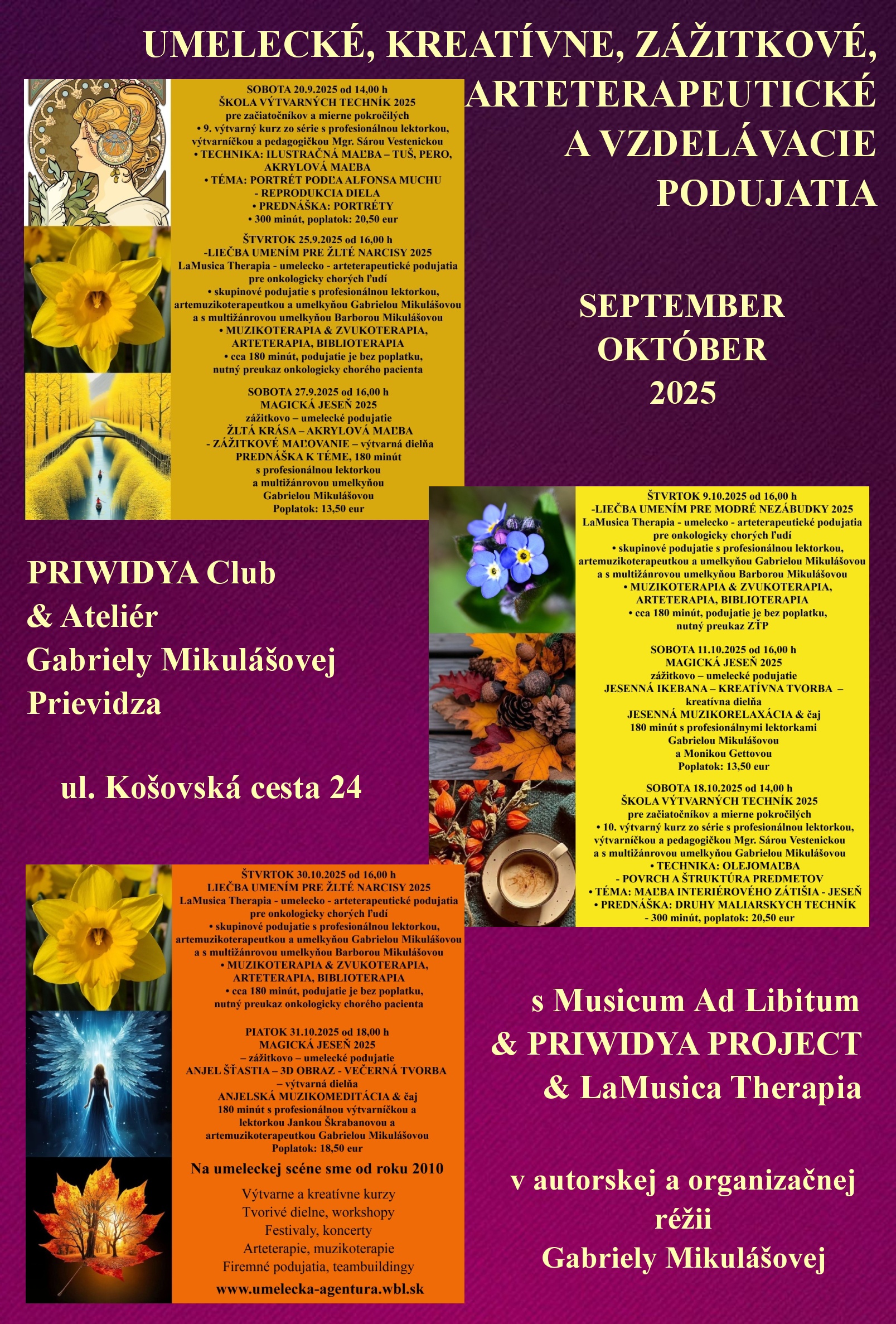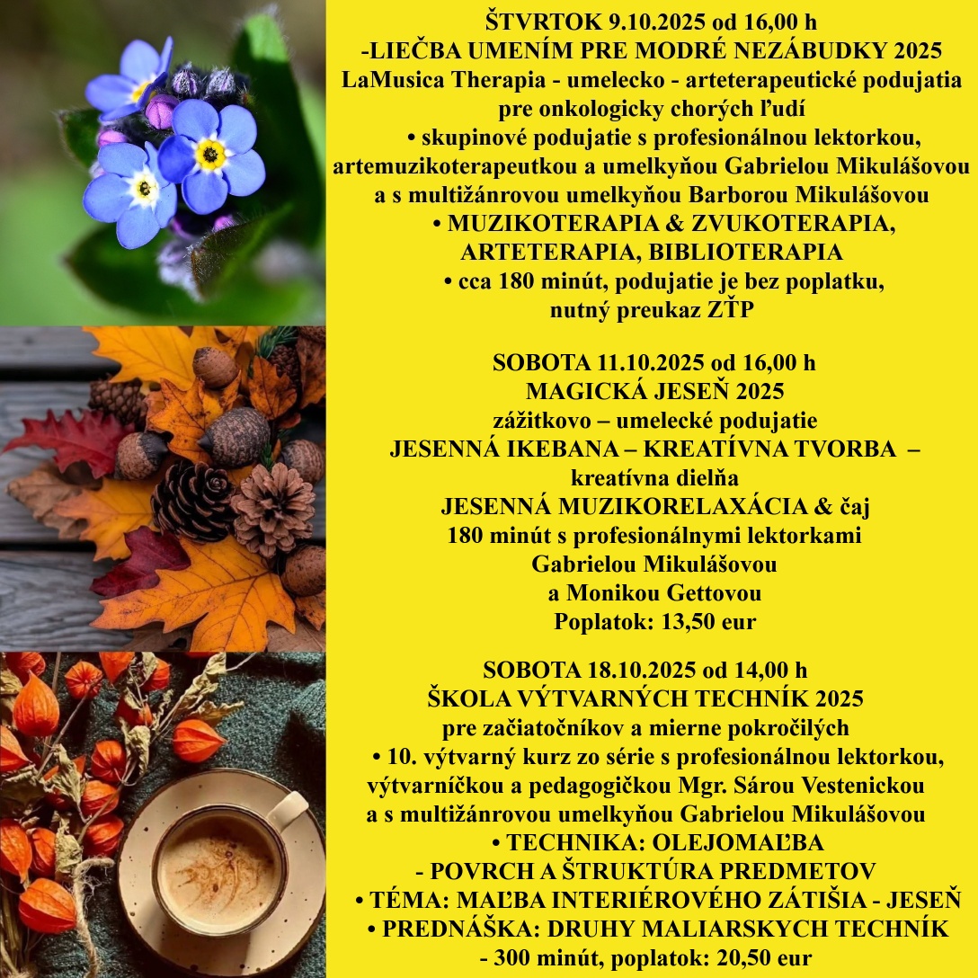 🍁ŠTVRTOK 9.10.2025 od 16,00 h - LIEČBA UMENÍM PRE MODRÉ NEZÁBUDKY 2025 LaMusica Therapia - umelecko - arteterapeutické podujatia pre psychicky chorých ľudí