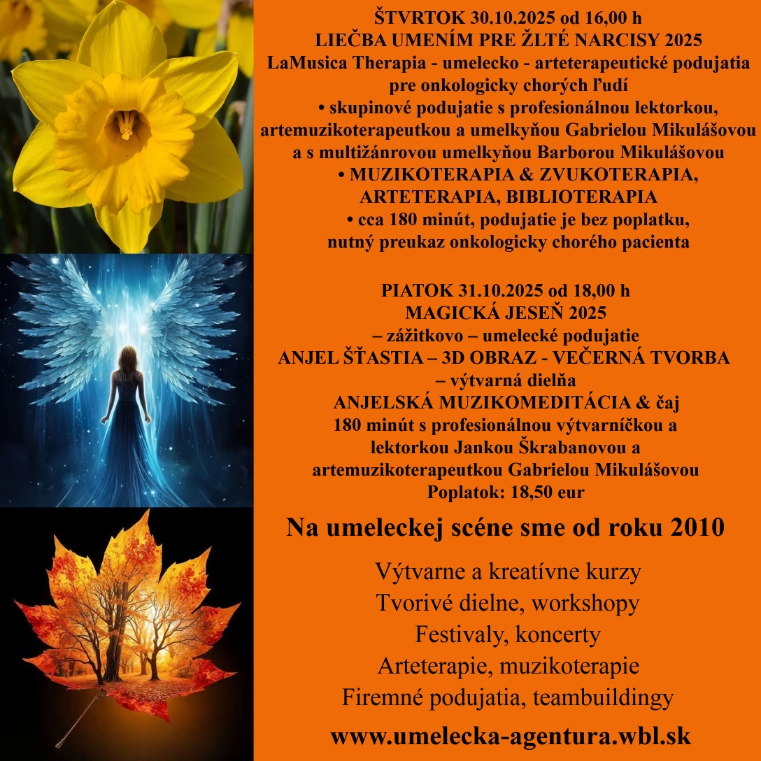 🍁ŠTVRTOK 30.10.2025 od 16,00 h - LIEČBA UMENÍM PRE ŽLTÉ NARCISY 2025 LaMusica Therapia - umelecko - arteterapeutické podujatia pre onkologicky chorých ľudí