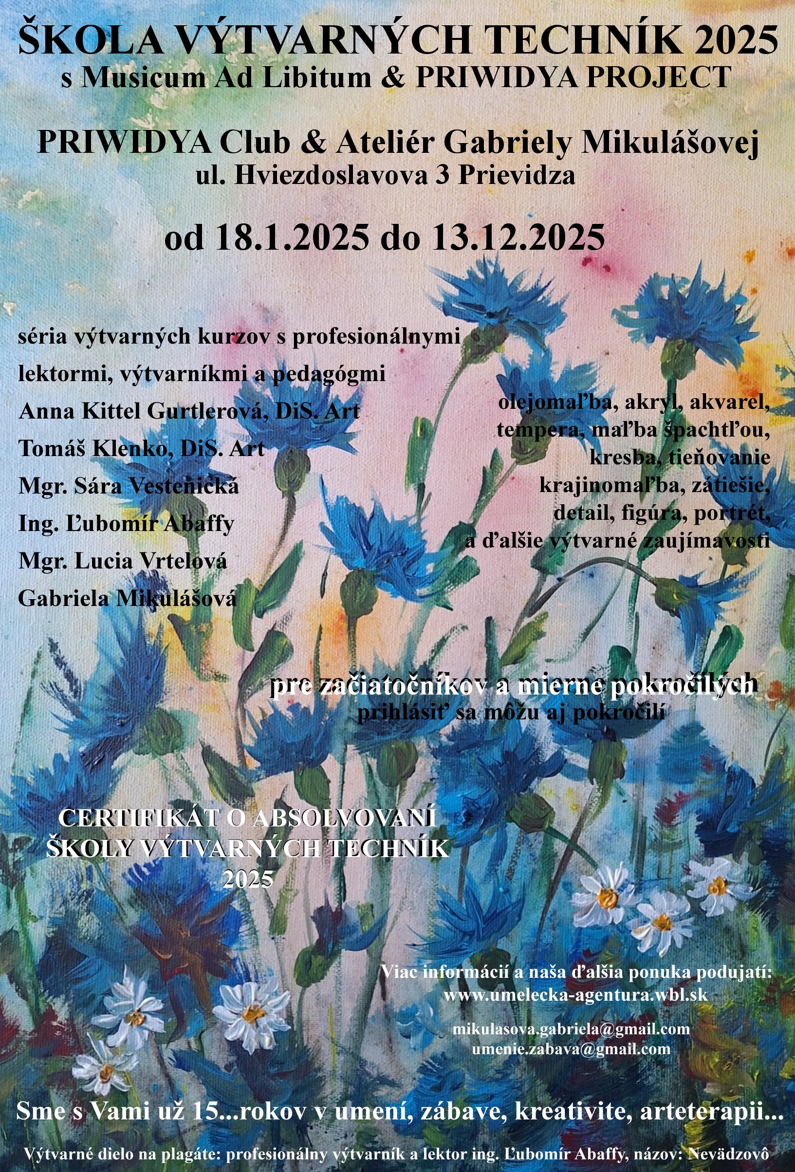 📌ŠKOLA VÝTVARNÝCH TECHNÍK 2025 pre začiatočníkov a mierne pokročilých - séria výtvarných kurzov s profesionálnymi lektormi, výtvarníkmi a pedagógmi: